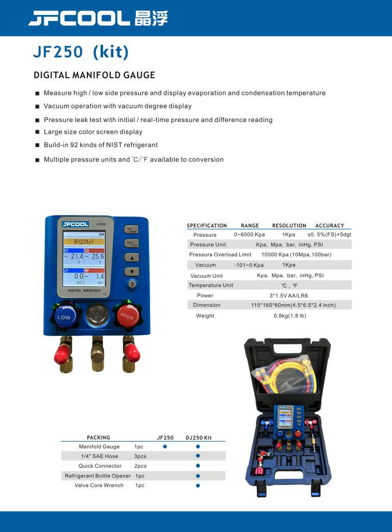 • Measure high/low side pressure, display evaporation and condensation temperature